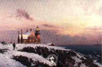 is a study of resolute courage and dignity. A solitary ship sets out on its voyage to and unknowable destination, led away from danger by the stoic lighthouse.