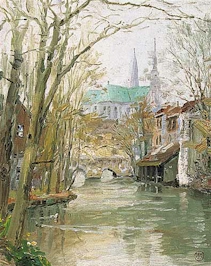 | The magnificent cathedral at Chartes is one of the most painted and photographed architectural wonders in the world. I set up my easel on a misty afternoon, when steam seemed to rise from the surrounding canals. This view provided me with a fresh look at a familiar treasure. | ||