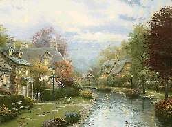| When I painted "Lamplight Lane," I found myself wondering about the sylvan stream that runs alongside the village lane. "Lamplight Brooke" is my picture of what lies downstream from my original "Lamplight Lane" painting. | ||