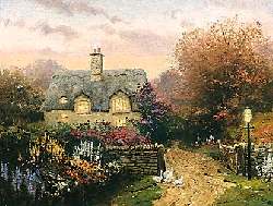 | Open gates are an invitation to visit, especially when lights glow warmly within an English cottage. If you're in the mood to chat, you might just wander up the rutted lane and knock briskly on the old, weather-worn door of this charming cottage, Open Gate, Sussex. | ||