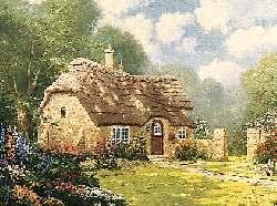 | While strolling with Nanette through the English countryside, I happened upon this magnificent stone cottage, nestled amongst trees and a lavish garden. The stone itself was massive, weathered, impervious to changes of climate or season. But the blooming world around was exquisitely sensitive to every cloudburst, every soft breeze, every golden shower of sunshine. The contrast between stone and flower, between the obdurate rock and the sensitive plant, the enduring and the evanescent is at the heart of Spring at Stonegate. | ||