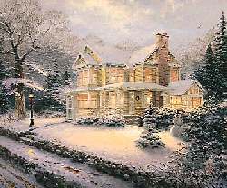 | In Victorian Christmas III I touch the quiet heart of the holiday itself. Bowered by stately evergreens and blanketed in new snow, this golden house is aglow with the spirit of Christmas. The silence that graces this lovely Victorian home is the same profound peace that once enfolded a babe in Bethlehem. | ||
