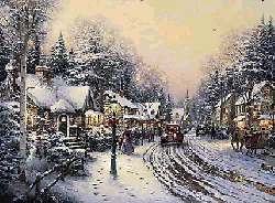 In Village Christmas, I have tried to capture a Christmas of a simpler time, where street lamps glow with the warm light of a natural flame and the townsfolk use a leisurely stroll to church as the opportunity to stop and chat about the joyous season. |